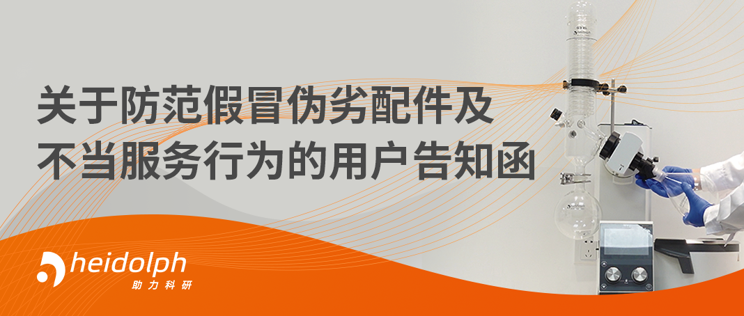 尊敬的海道尔夫用户:感谢您长期以来对海道尔夫品牌的信任与支持。作为一家致力于为实验室提供高品质、高性能仪器设备的专业厂商,我们始终将产品的安全性、精准性和稳定性置于首位,秉持“助力科研”的理念,客户的每一次成功,是我们不断前行的动力。在近期的线下服务与客户回访过程中,我们遗憾地发现部分用户误购市场上的假冒伪劣配件,导致原装设备性能下降甚至损坏。此类假冒伪劣配件非Heidolph原厂生产,其工艺、材
